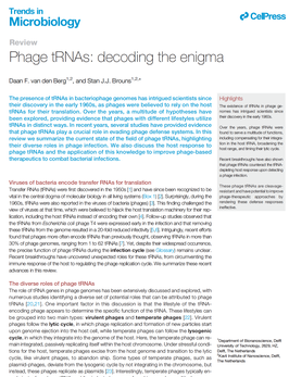 110. van den Berg DF, Brouns SJJ. Phage tRNAs: decoding the enigma. Trends Microbiol. 2025 Oct;33(10):1121-1131.