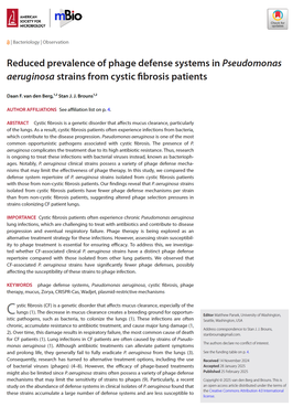15. Van den Berg DF, Brouns SJJ. Reduced prevalence of phage defense systems in Pseudomonas aeruginosa strains from cystic fibrosis patients. BioRxiv 2024.